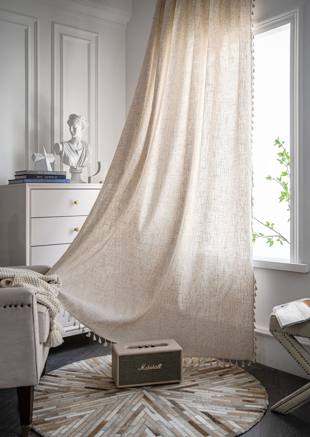 Polyester Linen Solid Color Simple Bedroom Living Room Half Shade Curtain